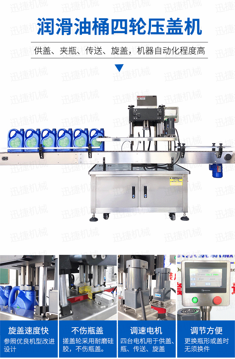 4.我們采用分系統(tǒng)動(dòng)力控制及供料,提升了灌裝速度;以1L為例,4頭灌裝機(jī)每小時(shí)可達(dá)到1000桶/小時(shí);灌裝在提升灌裝范圍的同時(shí),對(duì)計(jì)量方式進(jìn)行了改進(jìn),大大提高了灌裝精度,誤差1‰以內(nèi)。5.灌裝頭獨(dú)有的雙重防滴漏,灌裝下料口設(shè)計(jì)精細(xì),行程短,同時(shí)也提高了整條線的灌裝速度和灌裝精度,保證在正常灌裝過程中一滴油都不會(huì)滲漏。