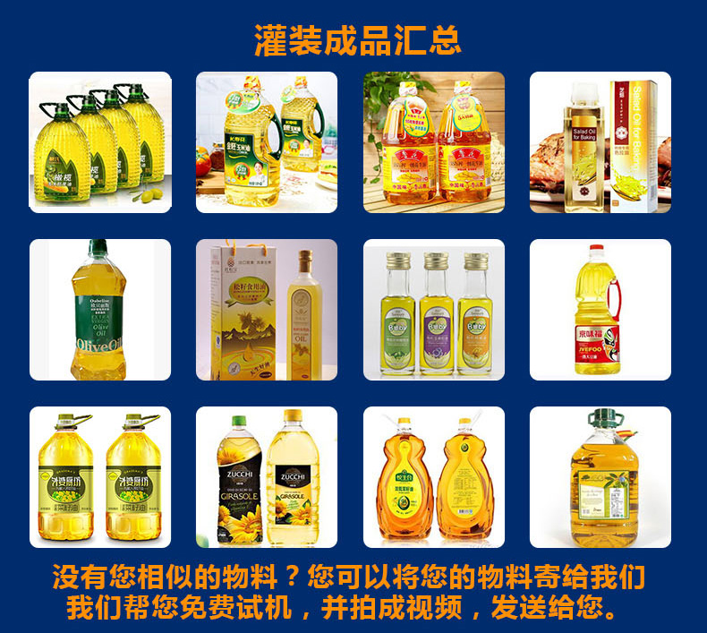 并且食用油灌裝機采用316L不銹鋼精制防滴漏灌裝頭,通過性好,內(nèi)外精拋,是真正的食品級,食用油灌裝機的獨特灌裝頭設(shè)計及真空回吸系統(tǒng),確保灌裝過程無殘油滴漏,快慢雙速灌裝,灌裝速度可調(diào),杜絕溢瓶現(xiàn)象。該機采用動力灌裝,無需配裝高位罐,簡化了安裝工序,提高了灌裝效率。履帶式壓蓋機,穩(wěn)定無噪音,無空壓現(xiàn)象。觸摸屏界面友好,操作簡捷,SIEMENS PLC控制系統(tǒng),運算速度快,性能穩(wěn)定,品質(zhì)卓越。電、氣件均采用精品元件,所以確保了整機運作穩(wěn)定,故障率低,讓您安心的使用食用油灌裝機,實現(xiàn)快速生產(chǎn)。